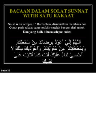 Yugi al doa witir dan solat sunat witir jakim adalah salah satu ibadah sunah yang. Doa selepas solat tarawih ini biasa disebut dengan doa kamilin. Terimalah dari kami shalat kami puasa kami shalat malam kami kekhusyuan kami kerendahan hati kami ibadah kami.