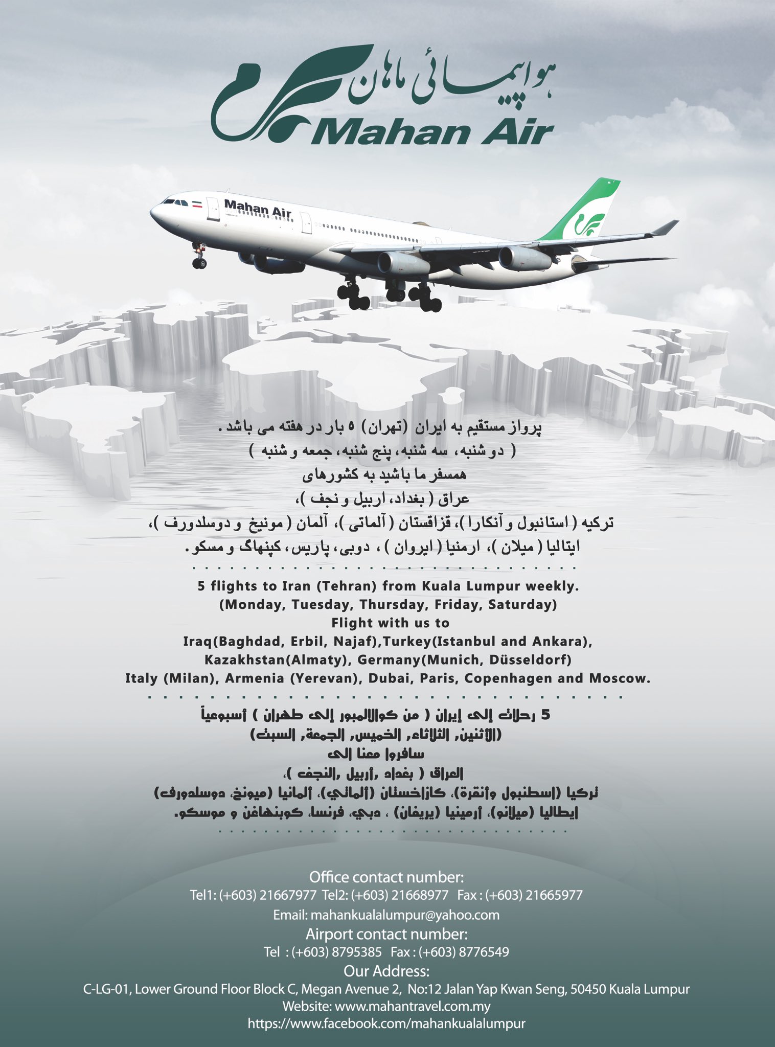 Mahan Air Kuala Lumpur Contact Information. Compare Mahan Air flights to Kuala Lumpur International now. City Center C-LG-01 Lower Ground Floor Block.